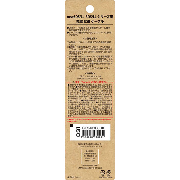 New 3DS LL用充電USBケーブル ブラック (new3DS/new3DSLL/3DS/3DSLL/DSi/DSiLL対応) [BKS-N3DJUK] 【ビックカメラグループオリジナル】