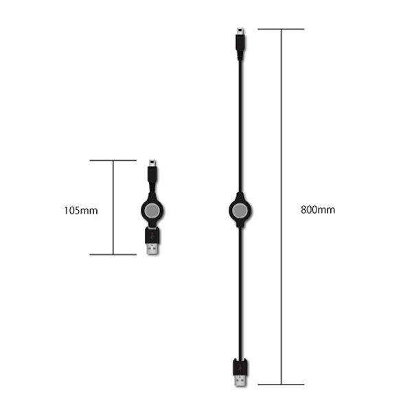 パソコンなどのUSBポートから充電できる、巻き取り式充電ケーブル