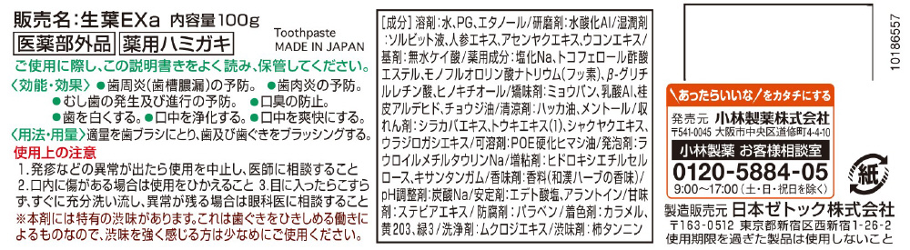 | 商品名 | 薬用 生葉EX 100g〔歯磨き粉〕 |