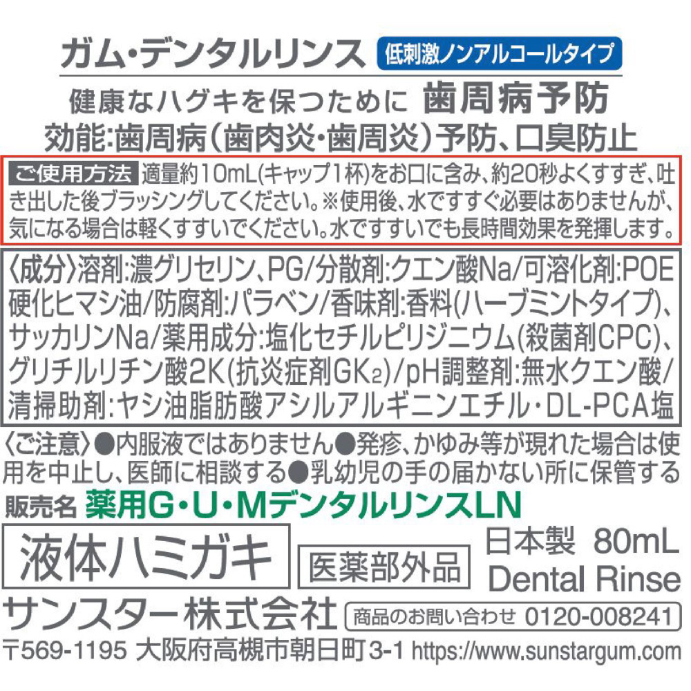 【洗口液】GUM デンタルリンス ノンアルコール80ml