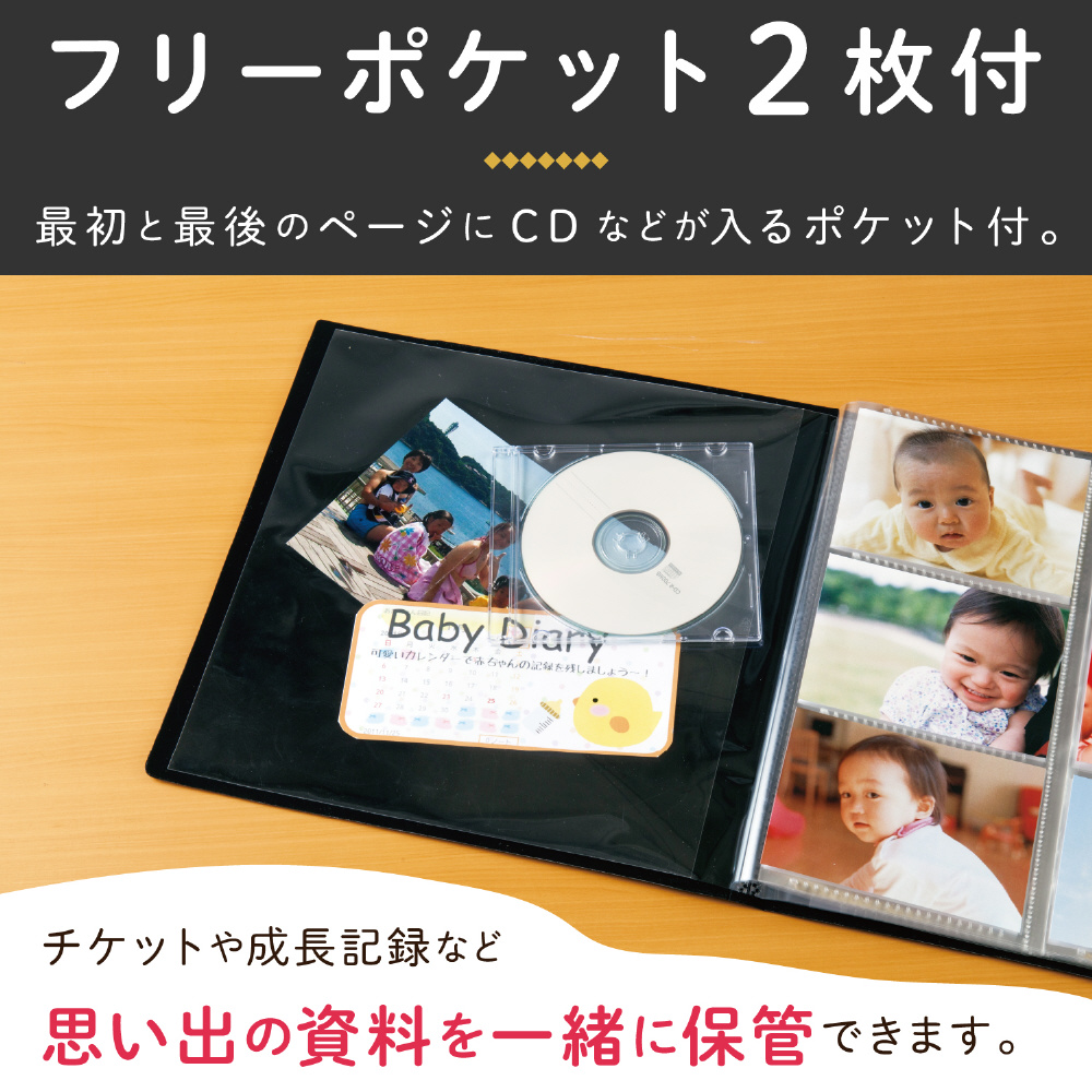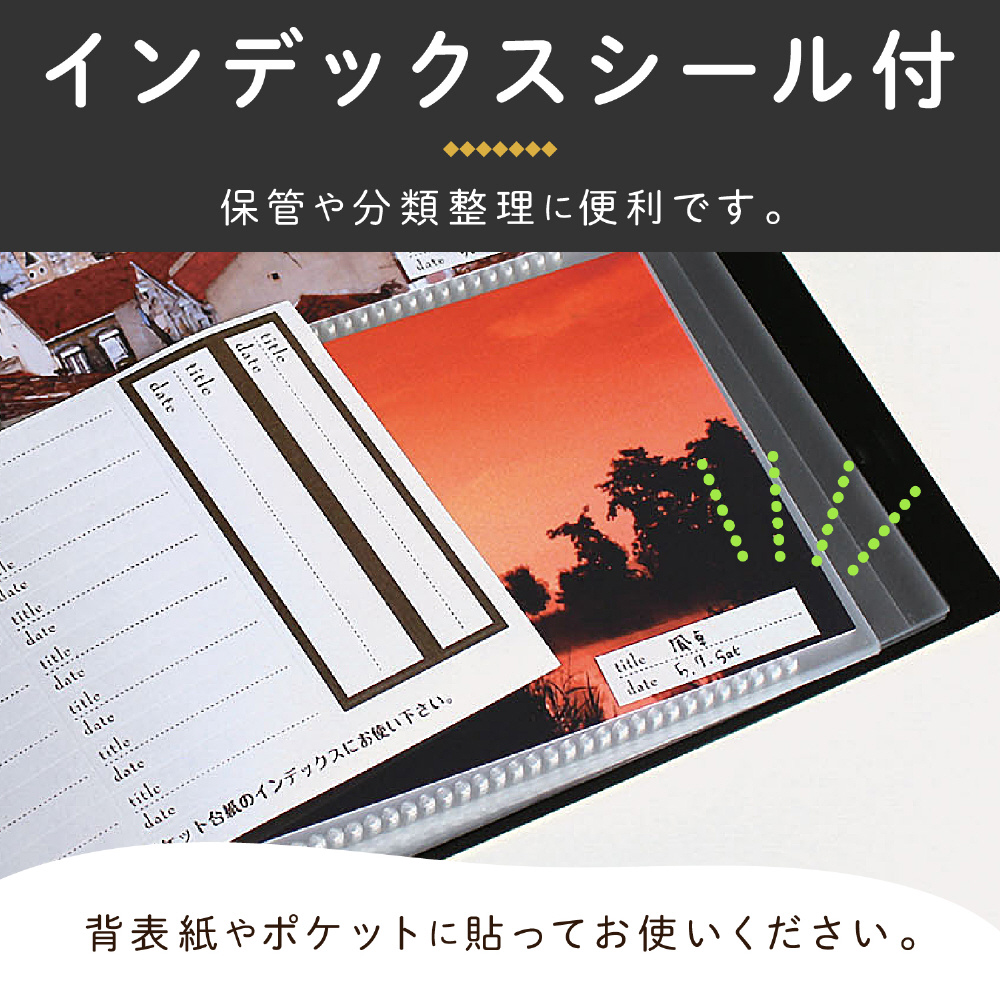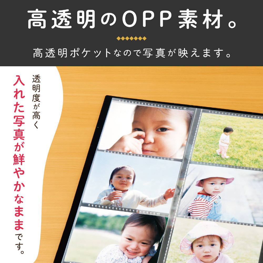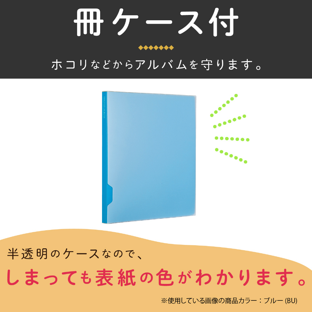 L判写真が見開きで12枚収容できる高透明ポケット採用のフォトアルバムです。