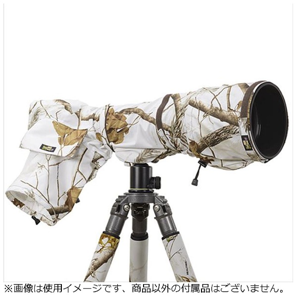 望遠レンズに、カメラボディを付けた状態ですっぽり覆えるレインコートです。