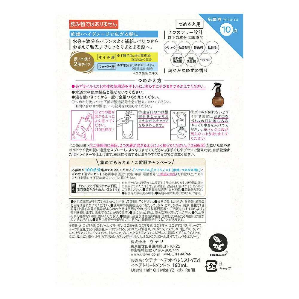 無添加オイルミスト ゆず油 つめかえ用 160ml