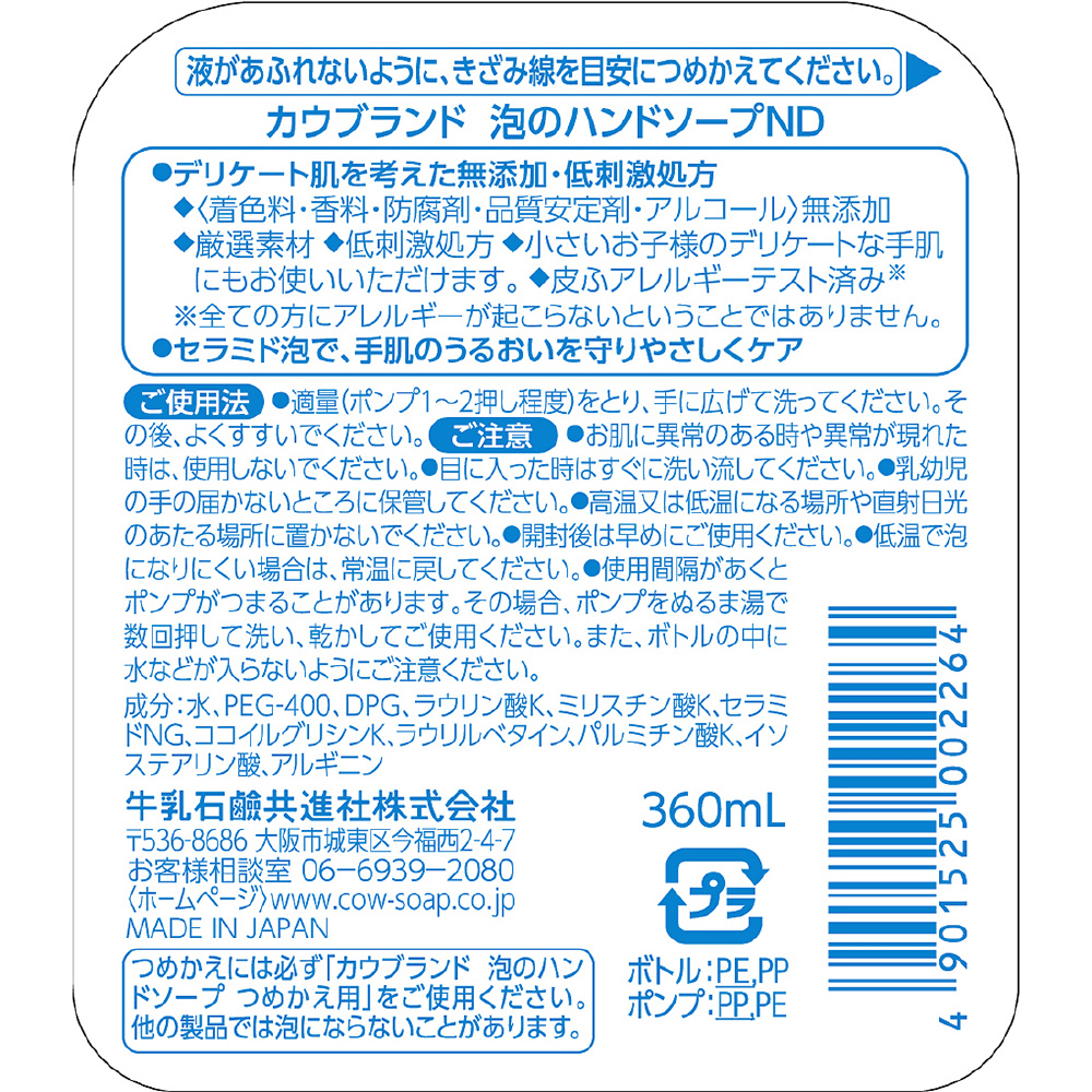 【カウブランド】 無添加 泡のハンドソープ ポンプ 360ml〔ハンドソープ〕