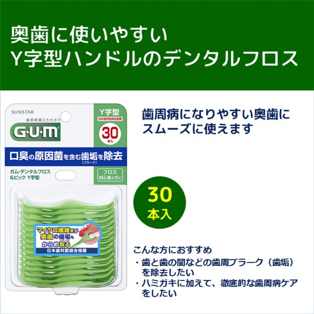 【GUM(ガム) 】デンタルフロス&ピック Y字型 30本入〔歯間ブラシ〕