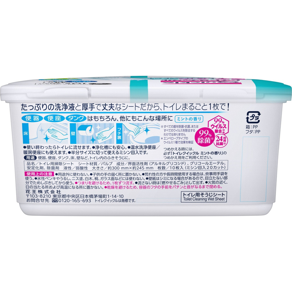 【トイレクイックル】 容器入 ミントの香り 10枚〔トイレ用洗剤〕