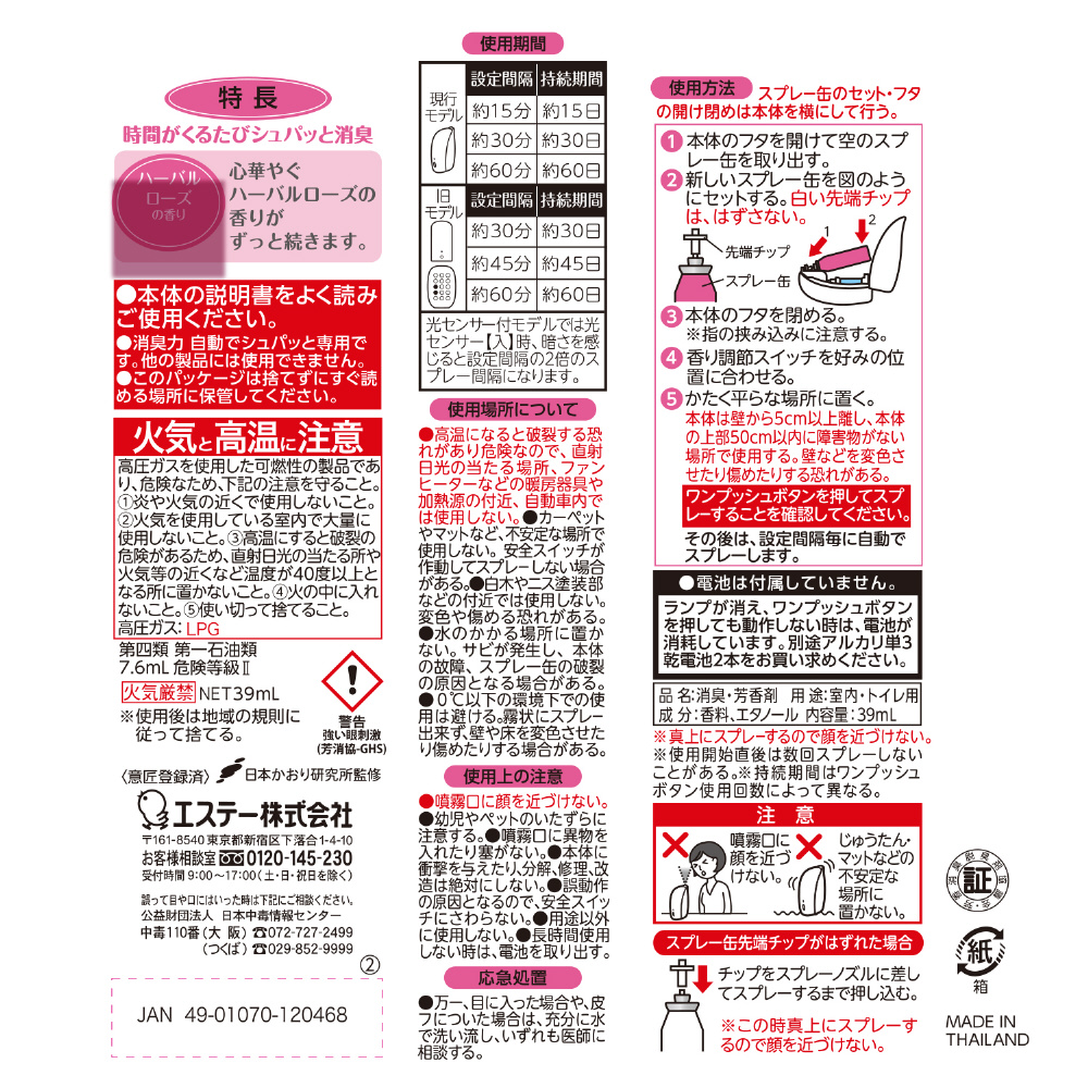 【消臭剤】自動でシュパッと消臭プラグ つけかえ ハーバルローズの香り