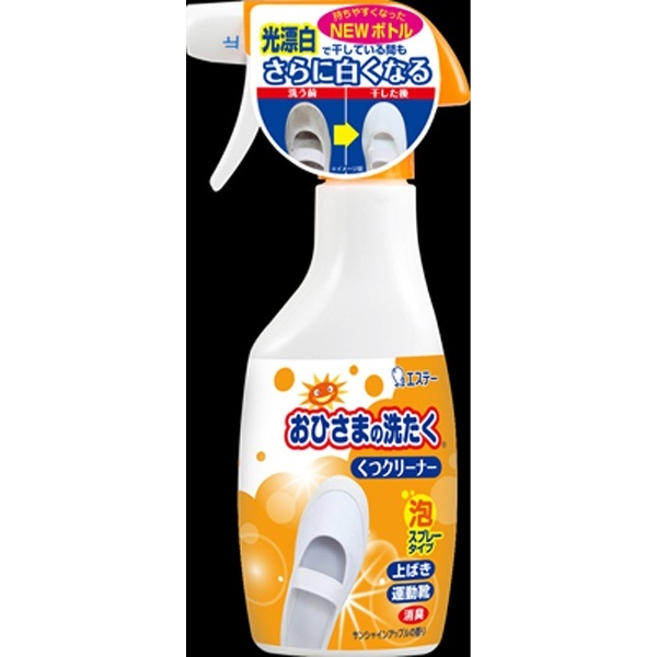 光でさらに白くする!光漂白成分が、明るいところに干す事によりしつこい汚れとニオイを分解します。靴の奥の汚れまで泡が届きやすいスプレータイプです