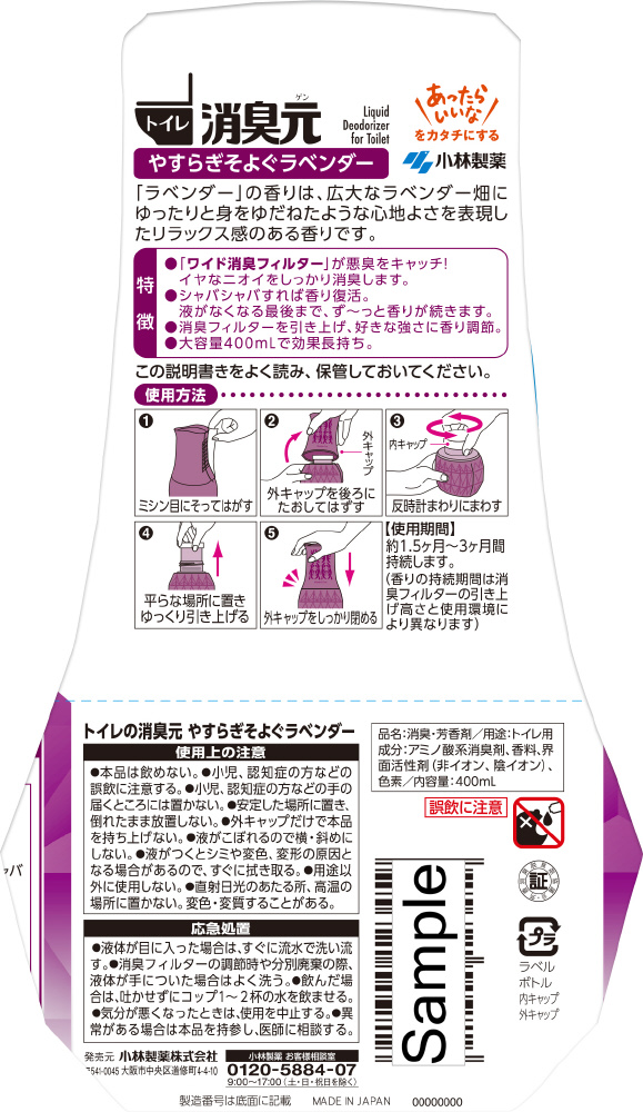 トイレの消臭元 やすらぎそよぐラベンダー 400ml
