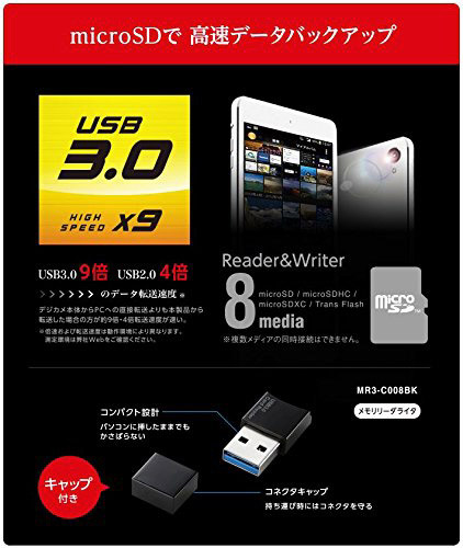 microSDで高速データバックアップ。タブレットやスマートフォンのデータをパソコンに転送するのに最適なUSB3.0対応のmicroSD専用メモリカードリーダ。