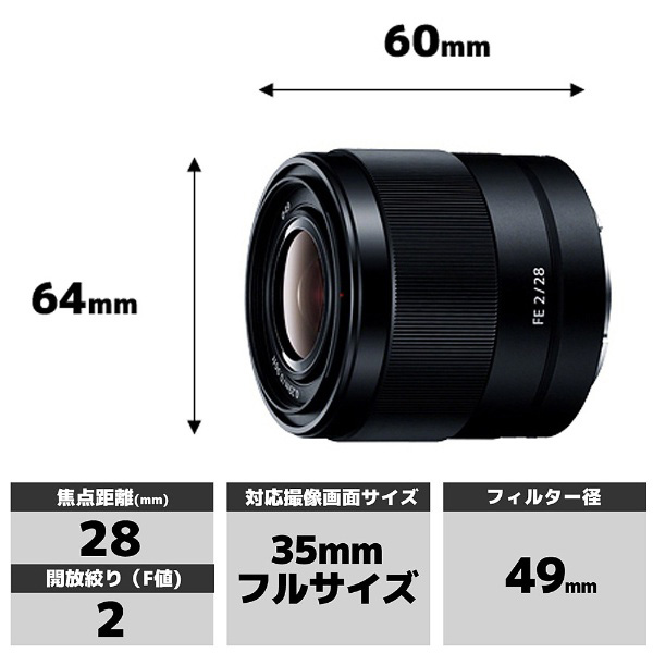 | 商品名 | カメラレンズ FE 28mm F2 ブラック SEL28F20 [ソニーE /単焦点レンズ] |