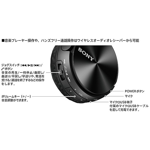 連続音楽再生約30時間。音楽の再生・音量調節などジョグスイッチで簡単操作のワイヤレスヘッドセット