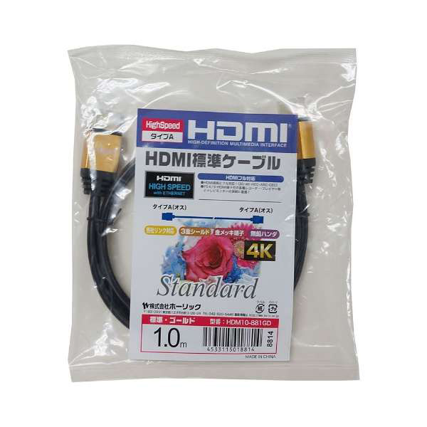 【在庫限り】 HDM10-881GD HDMIケーブル ゴールド [1m /HDMI⇔HDMI /イーサネット対応]