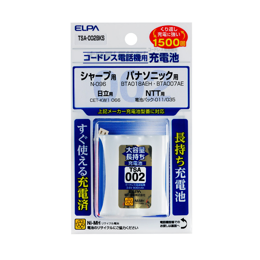 TSA-002BKS コードレス電話機用 充電池(大容量)