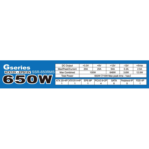 【パッケージ汚れ・破損等ございます】 PC電源 Gシリーズ ブラック SSR-650RMS [650W /ATX/EPS/80PLUS Gold]