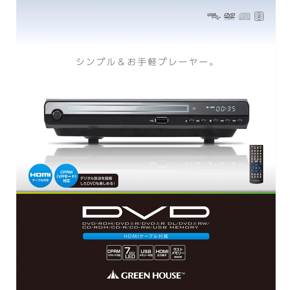 コンパクトデザインのHDMI対応DVDプレーヤー(ケーブル付属)