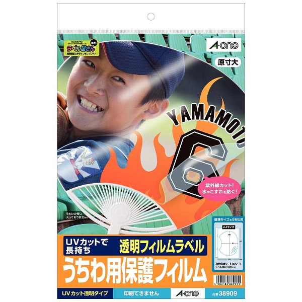 商品名 ウチワ用ラベル カバーフィルム (A4判・4シート) 38909