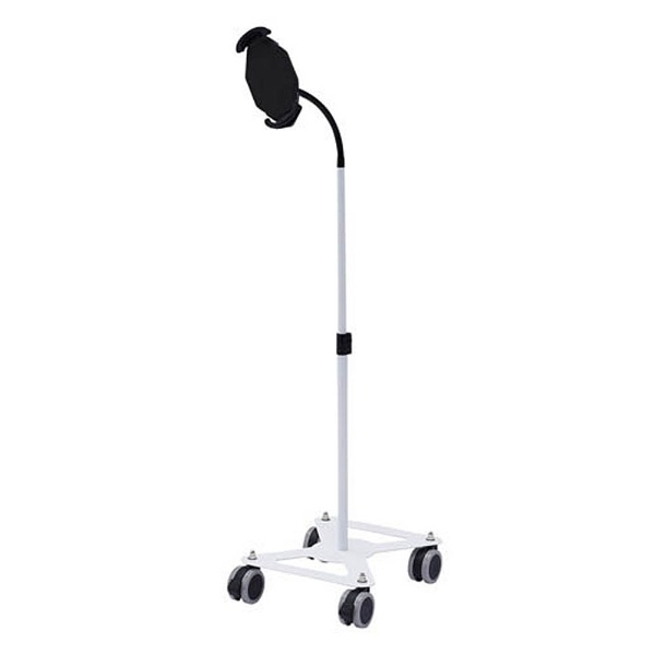iPad・タブレットをアームに取り付けたまま楽々移動できるキャスター付きスタンド。ホワイト。