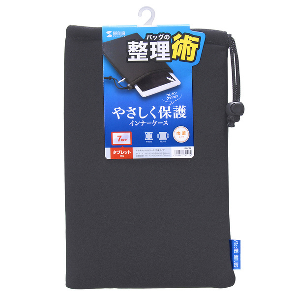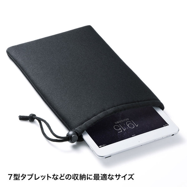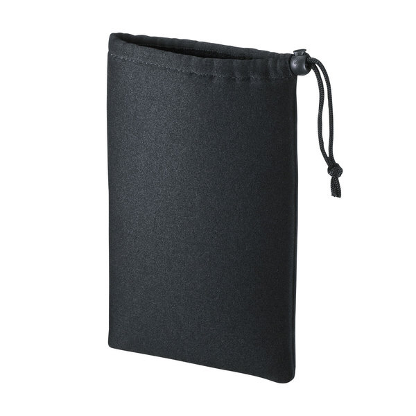 様々な用途に大活躍、機器を優しく保護するマルチクッションケース。巾着タイプ・ブラック。