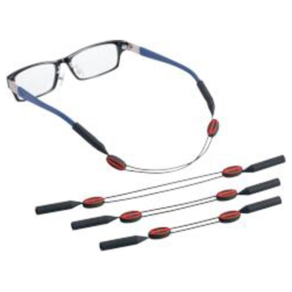 ワイヤー式で伸縮自在の眼鏡ストラップ。スポーツやアウトドアでの眼鏡・サングラスのズレ落ちを防ぎます。