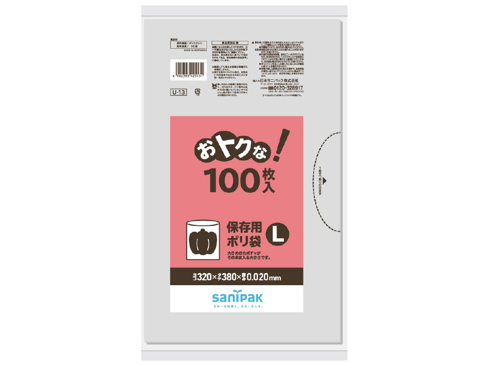 U-13おトクな!保存用ポリ袋L透明 100枚 U13CL
