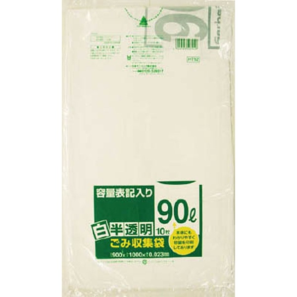 HT92容量表記入り白半透明ゴミ袋90L 10枚 HT92HCL