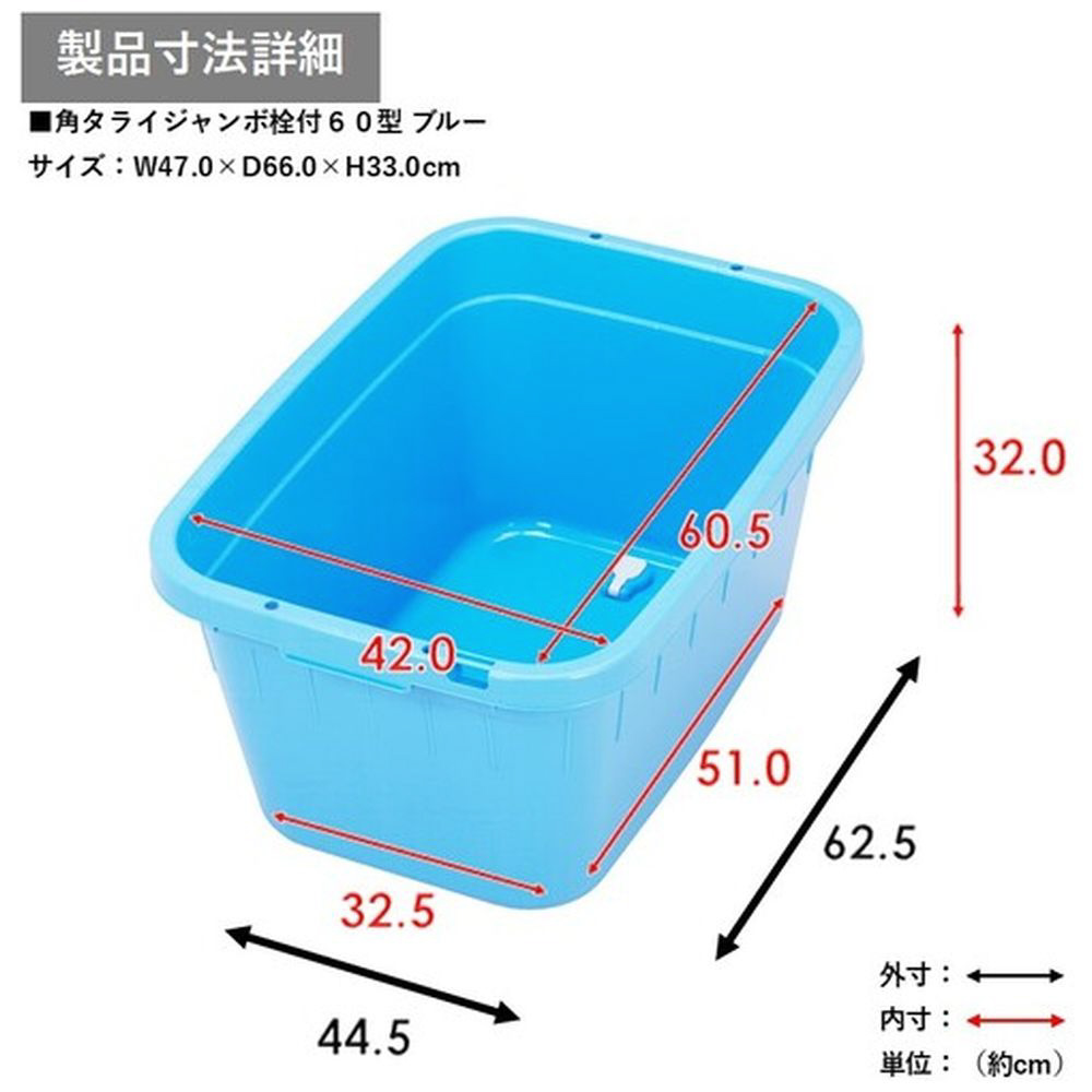 | 商品名 | 角型タライジャンボ 水抜栓付 ブルー60L 799 |