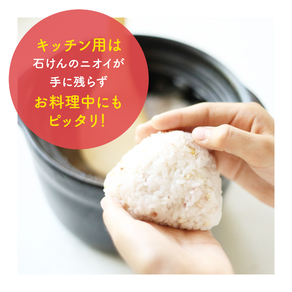食べ物のニオイが取れて、石鹸のニオイが残りません。泡で出てくるので調理中でも簡単に使えます。独自に開発した泡がすみずみまで殺菌/消毒。天然由来成分(洗浄剤)配合。三つの保湿成分配合(ヒヤルロン酸、ビタミンC誘導体、禄茶成分配合)