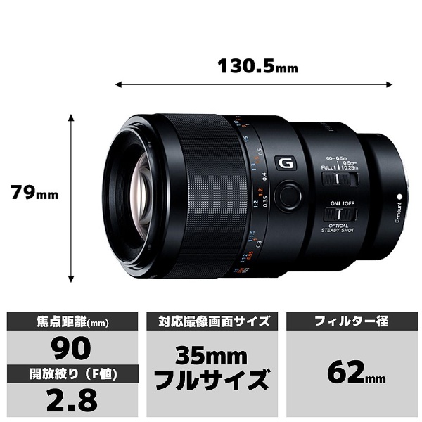| 商品名 | カメラレンズ FE 90mm F2.8 Macro G OSS ブラック SEL90M28G [ソニーE /単焦点レンズ] |
