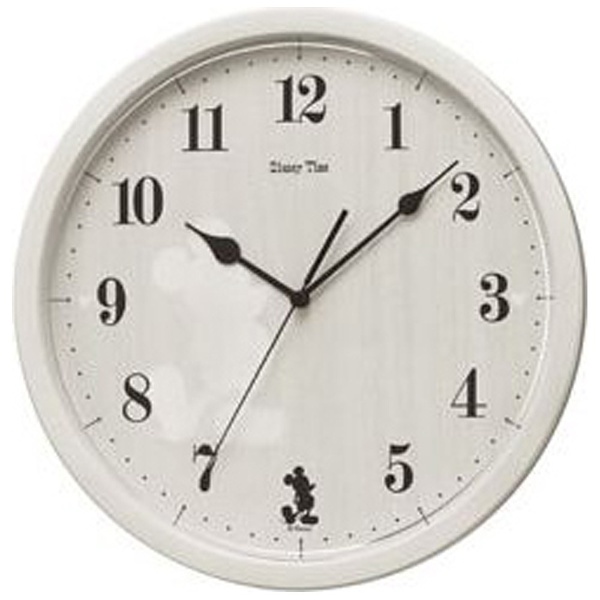 さりげなく配したミッキーのシルエットがおしゃれなナチュラルテイスト掛け時計。