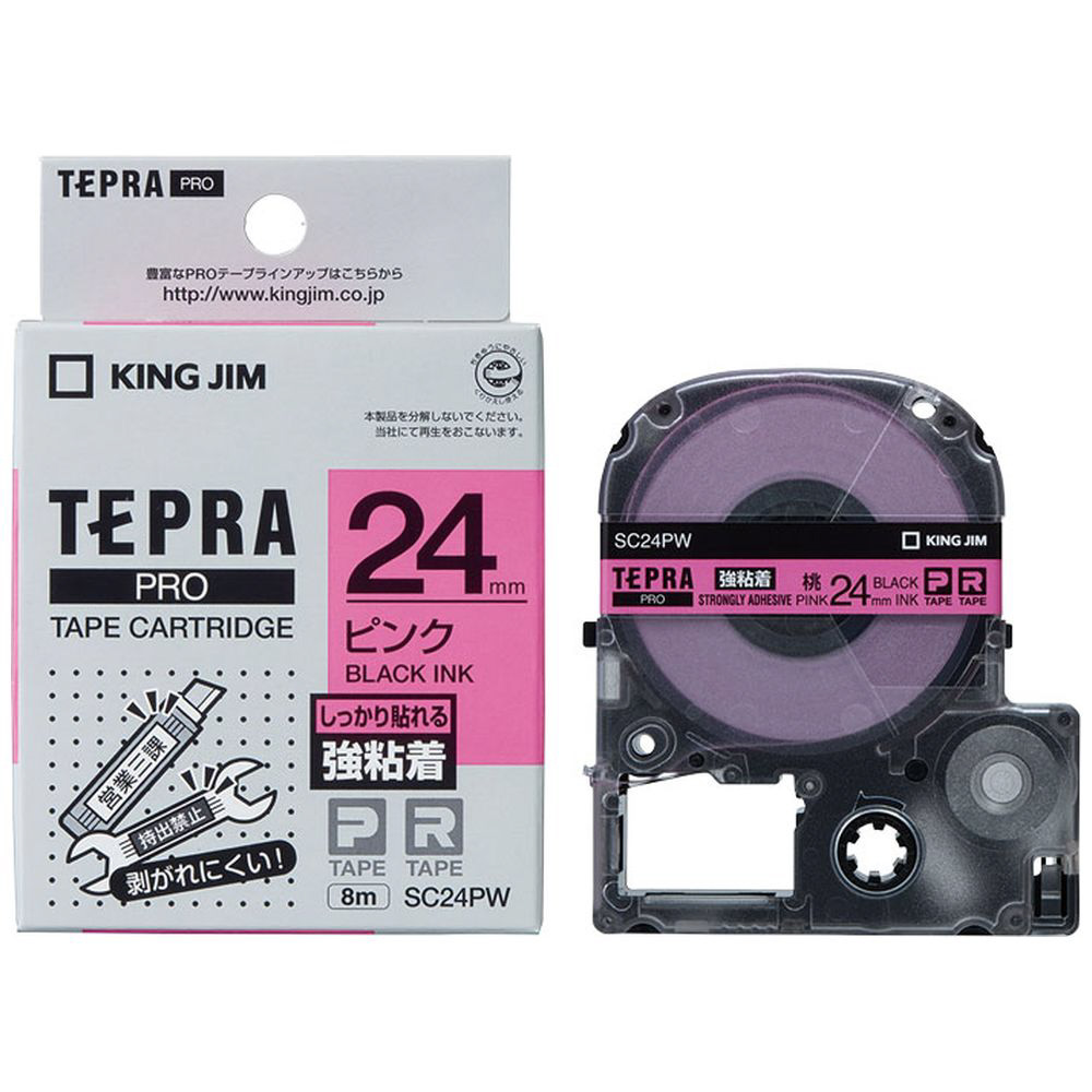 テプラ 強粘着ラベル (ピンクテープ/黒文字/24mm幅) SC24PW