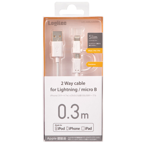 【在庫限り】 Lightning変換アダプタ付microUSBケーブル(0.3m/ホワイト) LHC-AMBLADN03WH