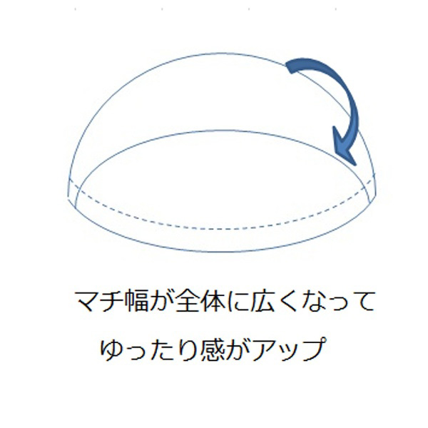 締めつけ感を軽減させたゆったり設計。マチ幅が全体に広くなってゆったり感がアップ。フリーサイズ。