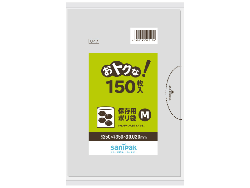 U-17おトクな!保存用ポリ袋M 150枚 U17CL