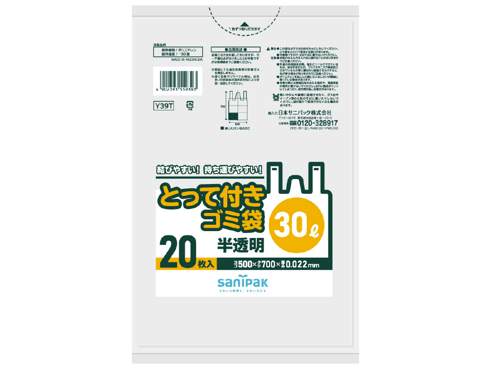 Y39Tとって付きゴミ袋半透明30L 20枚 Y39THCL