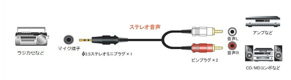 オーディオケーブル 抵抗入り(ステレオミニプラグ⇔ピンプラグ×2) 1.5m BK-STMP815R