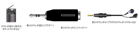 3.5ステレオミニプラグを2.5ステレオ超ミニプラグに変換する場合に使用します。