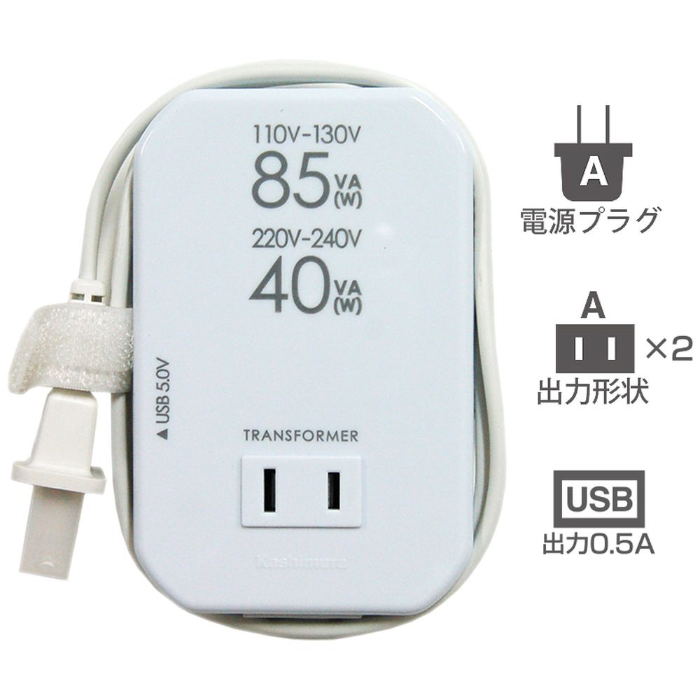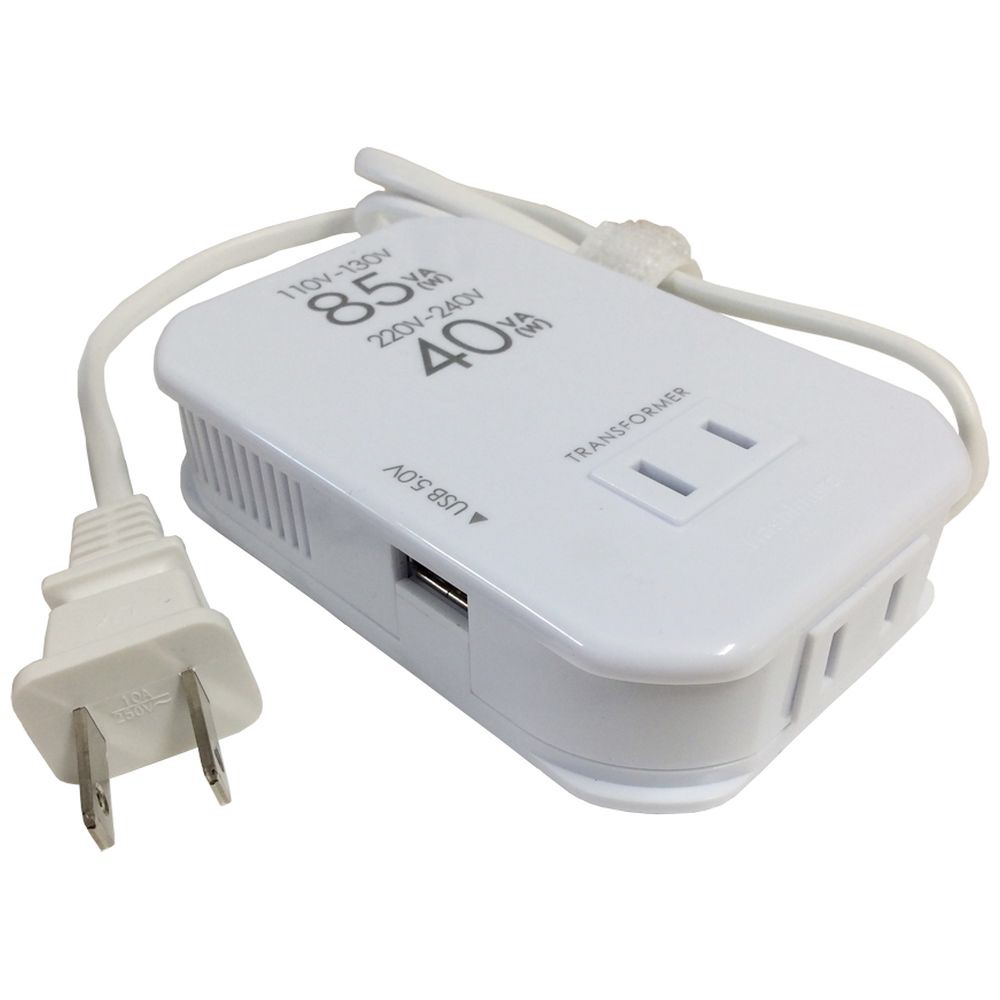 海外用薄型2口変圧器USB110-130V/85VA220-240V/40 WT-76M