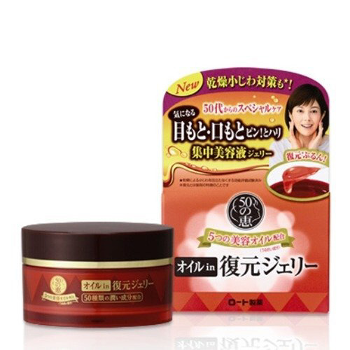 エイジング世代の肌で激減する油分を補うオイルinシリーズ。皮脂組成を考えた5つの美容オイルをしっかり配合・スクワラン・オリーブ果実油・ツバキ油・ローズヒップ油・シア脂油 形状復元するジェリーで目もと・口もとピンとハリ!