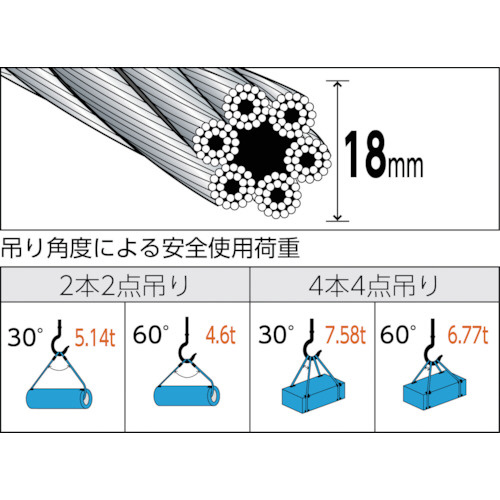 玉掛けワイヤーロープ 段落し 18mm×5m TWD18S5