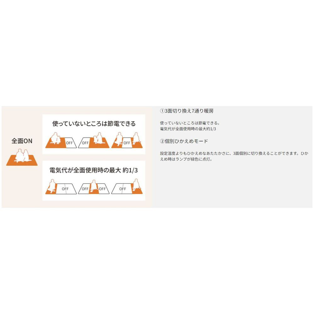 カーペット本体部分が厚さ約1.0cmもあるトリプル断熱構造。ムダな放熱を抑える高性能ヒーターを採用しています。