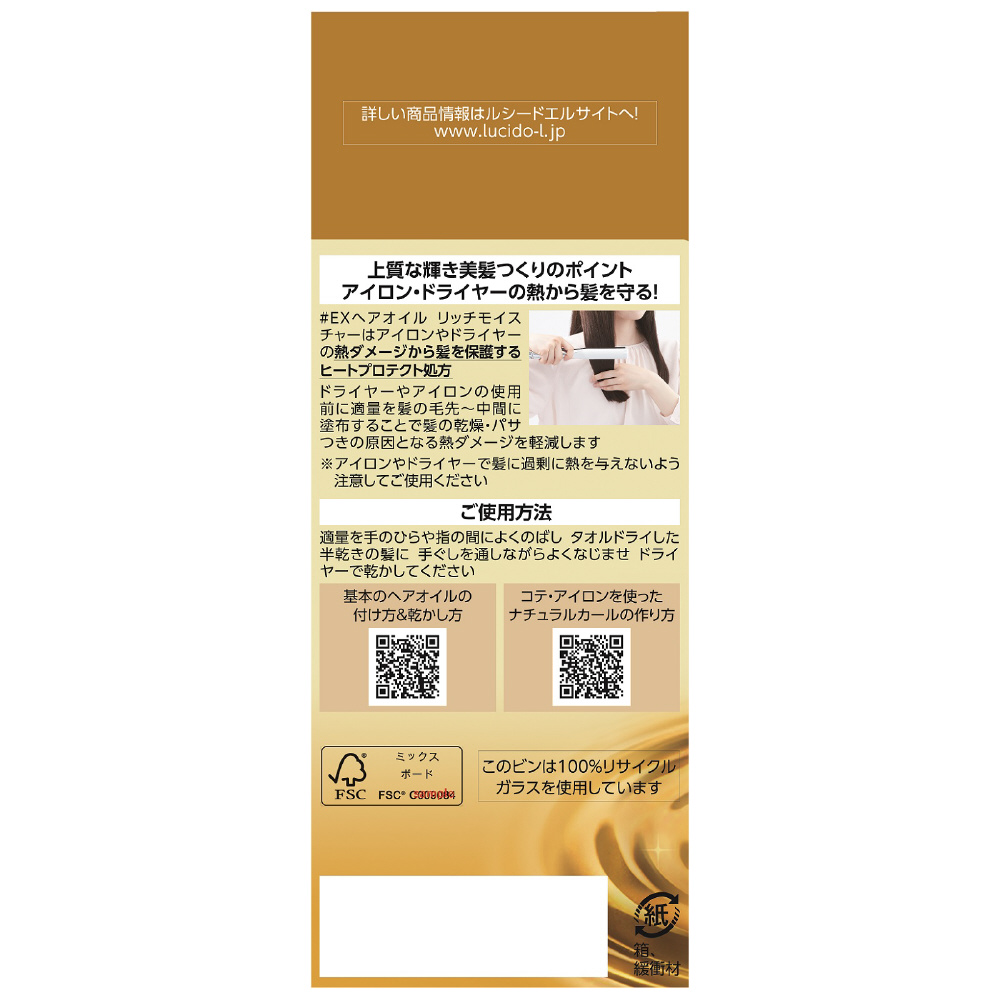 | 商品名 | 【LUCIDO-L(ルシードエル)】オイルトリートメントEXヘアオイルリッチモイスチャー(60ml) |