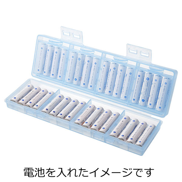 単四乾電池を4本ずつに分けて上下2段で収納できる大容量電池ケース。ブルー。