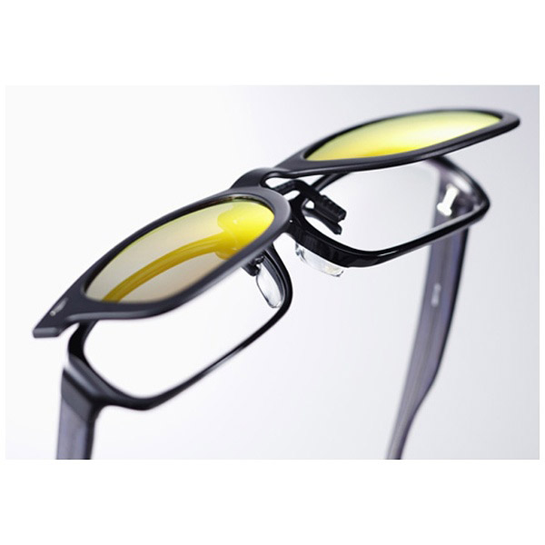 ワンタッチでメガネに装着できる、クリップオンタイプの偏光レンズ。