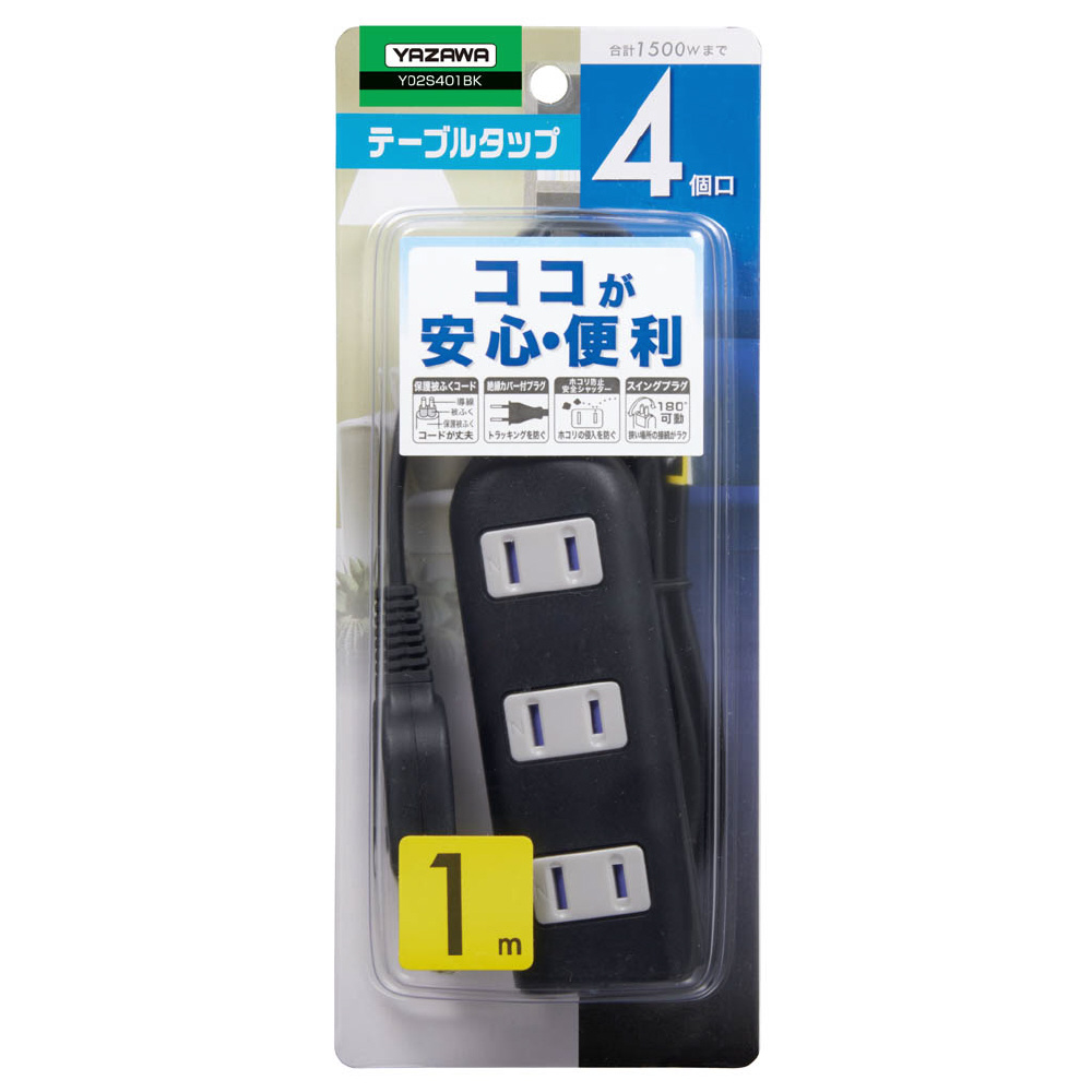 | 商品名 | 耐トラ付延長コード (4個口・1m) Y02S401-BK ブラック |