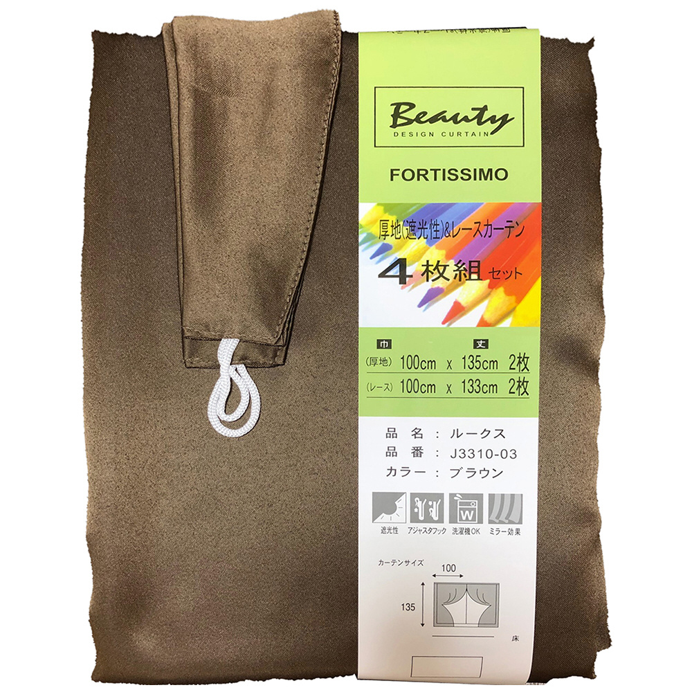 商品名 | 4枚組ドレープカーテン ルークス [100×135cm /ブラウン] |