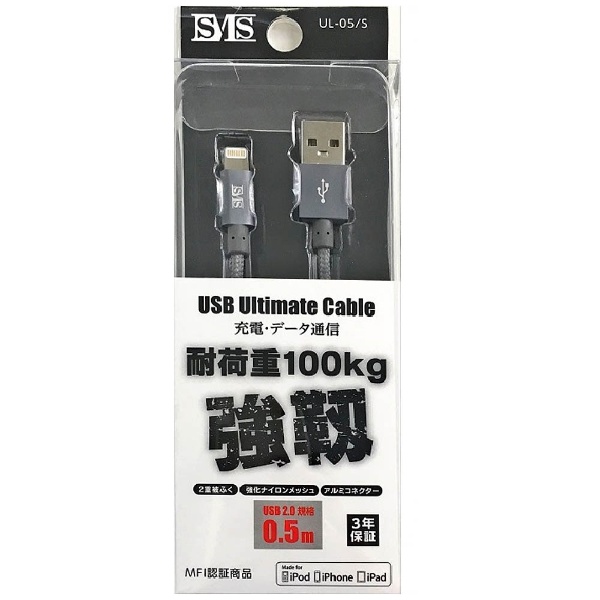 [ライトニング] ケーブル 充電・転送 (0.5m・シルバー)UL-05/S [0.5m]