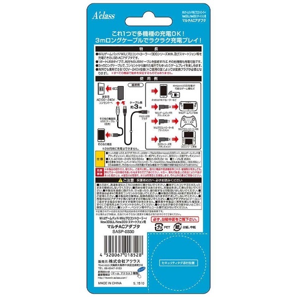 Wii U用 ゲームパッド マルチACアダプター (WiiUゲームパッド/WiiUプロコントローラー/New3DSLL/ New3DS対応) [SASP-0330]