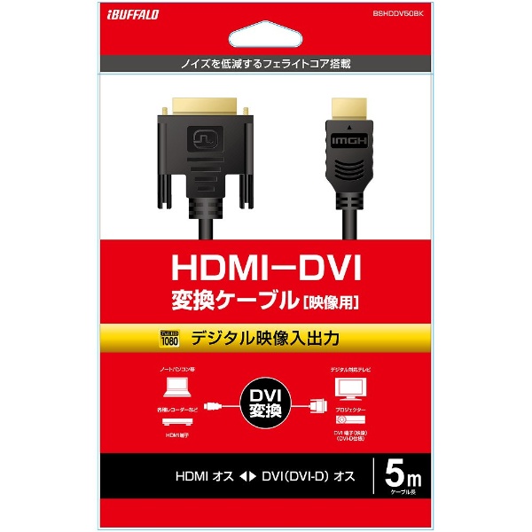 HDMI:DVI変換ケーブル コア付 5.0m BSHDDV50BK