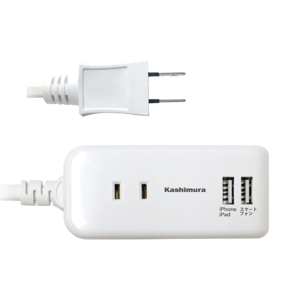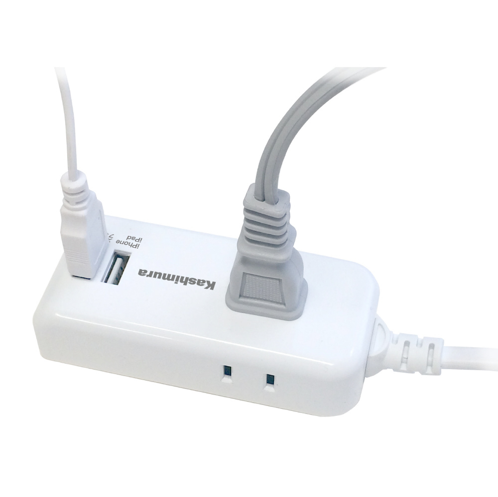 2口のACコンセントとUSB2ポートで最大4製品の使用が可能。USB付き電源タップです。